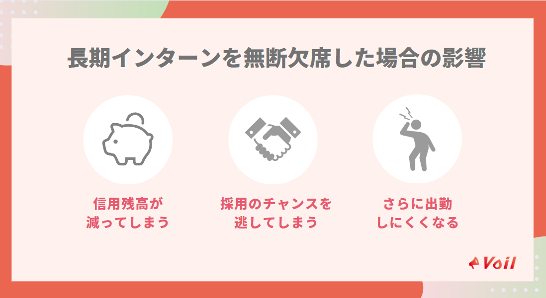 長期インターンを何度も無断欠席すると、その後の採用に影響する恐れがあります。