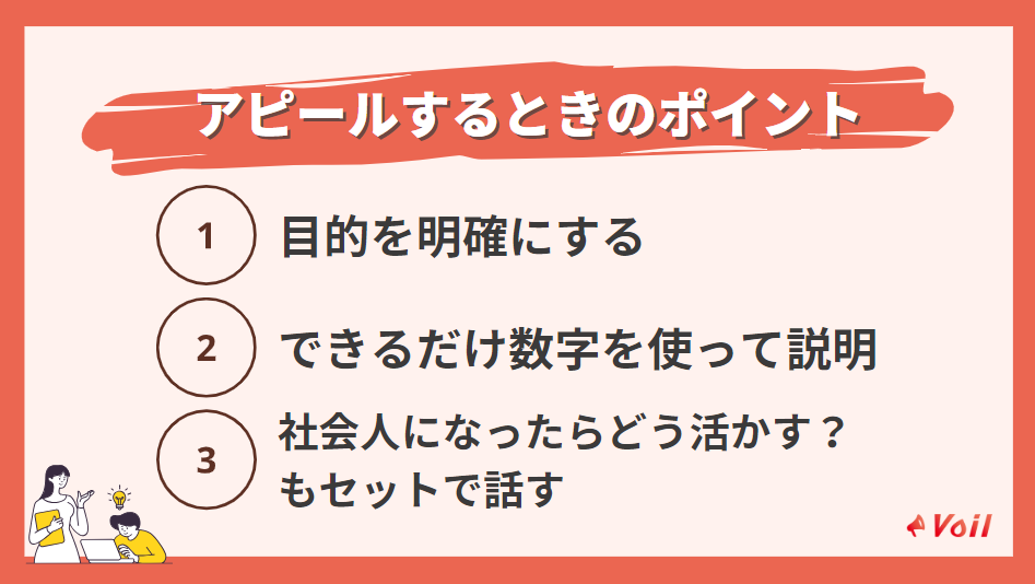 そこで、ここからはガクチカとして長期インターンをアピールするときのポイントを見ていきます。