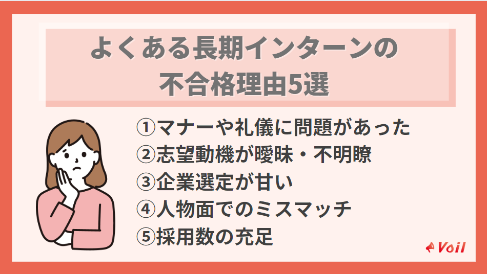 そこで、ここでは長期インターンの選考に落ちる原因を解説していきます。
