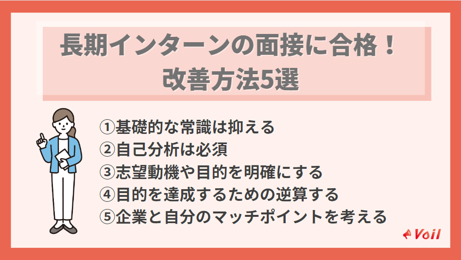 長期インターン選考を突破するには、企業が求める人物像を理解して、自分が当てはまっているポイントをアピールしましょう。