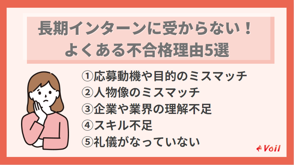 なので、長期インターン選考に合格できるようにするために、まずは受からない理由を理解しましょう。