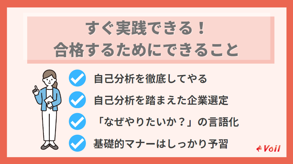 なので、受からない理由に当てはまらないよう事前対策をすることが大切です。