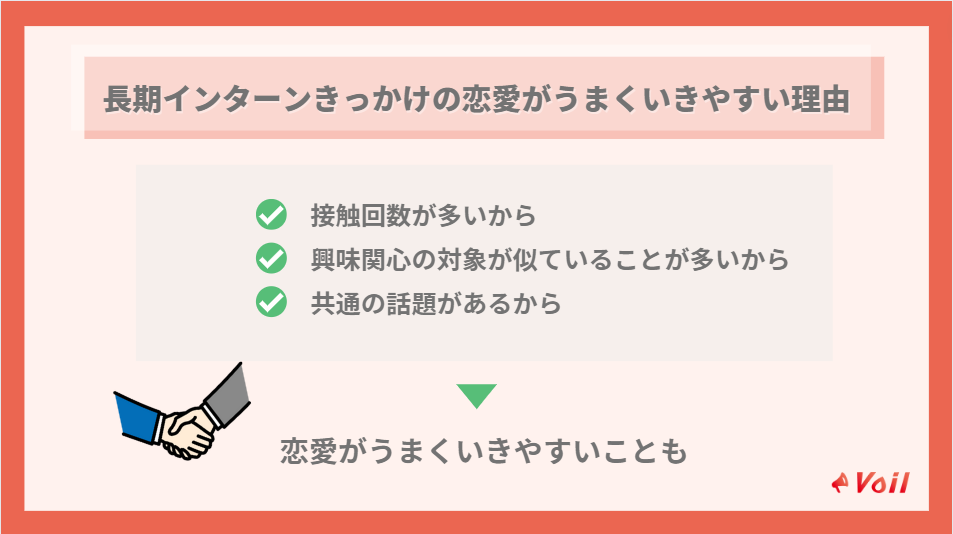 そのため、長期インターンが恋愛に発展する可能性があるのです。