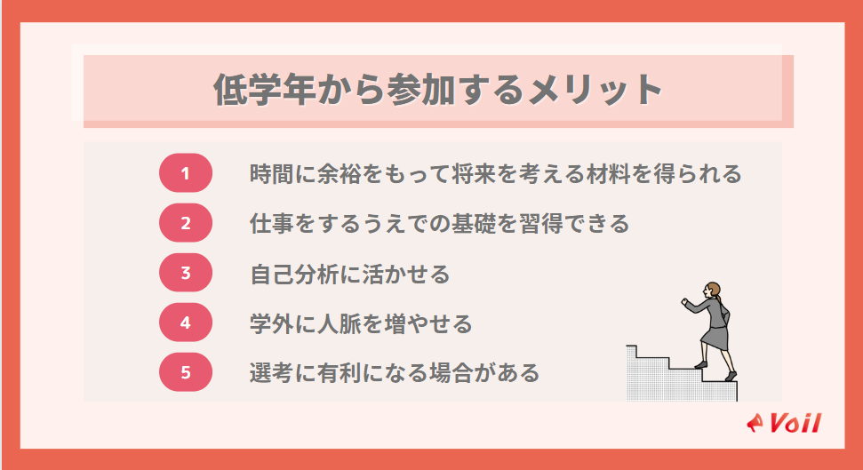 しかし、長期インターンは低学年のうちから始めた方がメリットが多いです。