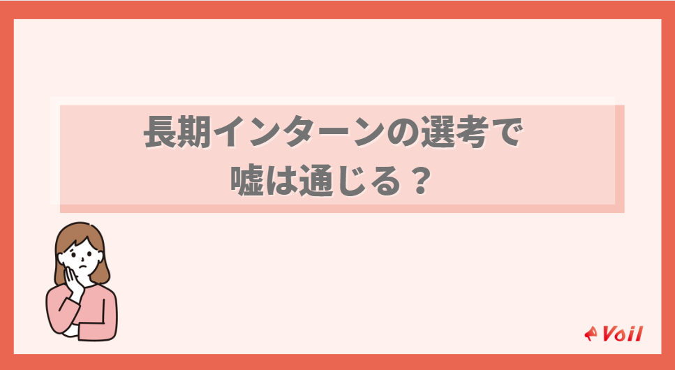 長期インターンの選考では、合格したい気持ちのあまり嘘をついてしまう人がいます。しかし、大きな嘘をついたらバレてしまうのではと心配になりますよね。
