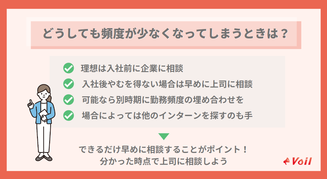 勤務条件通りの頻度で働くことが難しい場合は、他のインターンを探すことも検討してみましょう。