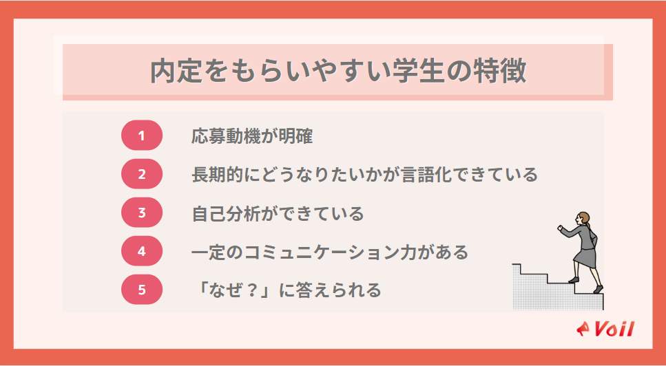 ここからは、内定率が低いのに長期インターンの内定がもらえる学生の特徴を見ていきましょう。