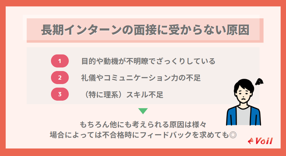 しかし、長期インターンの面接に受からないことにはいくつかの原因があるため、それを解決することが重要です。