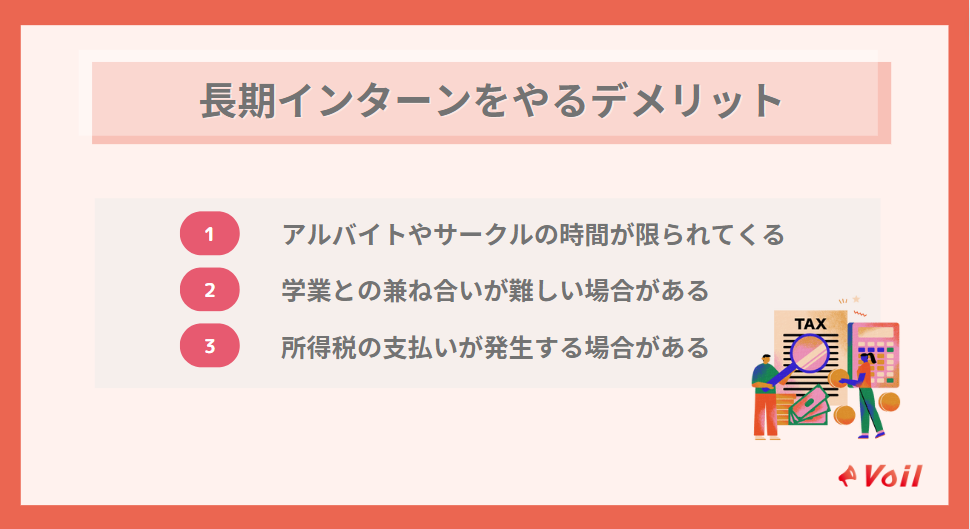 長期インターンに参加することには、デメリットも存在します。これから長期インターンに参加する人は、デメリットも合わせて理解しておきましょう。
