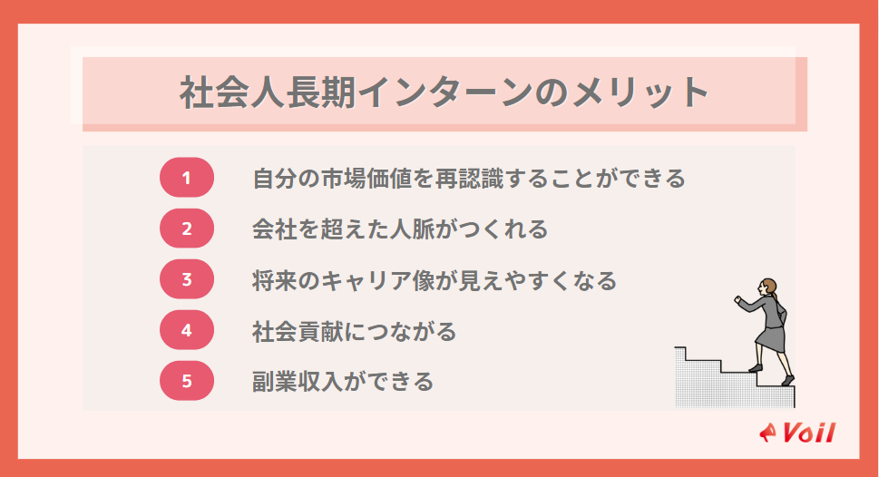 社会人インターンには、学生時代のインターンとは異なるメリットがいくつかあります。