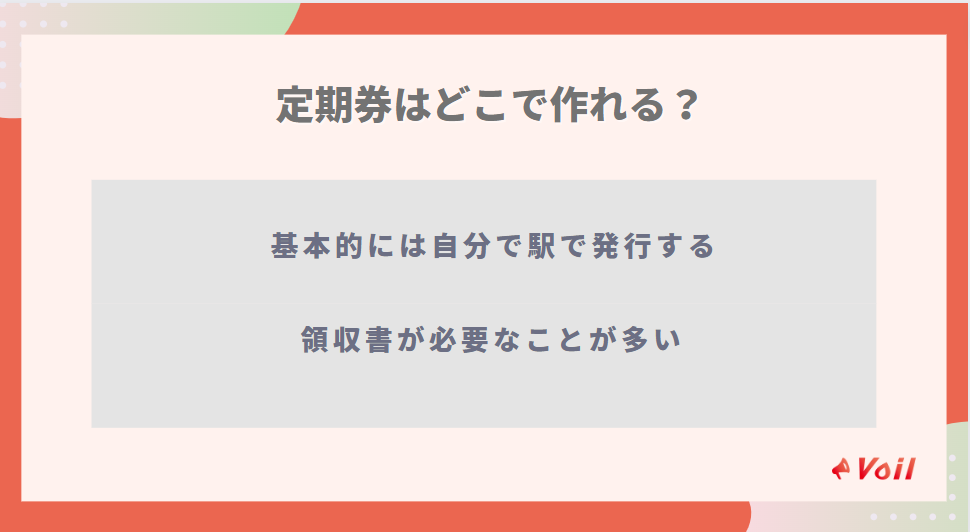 基本的にどの駅でも定期券は発行できるため、最寄りの駅などでつくりましょう。