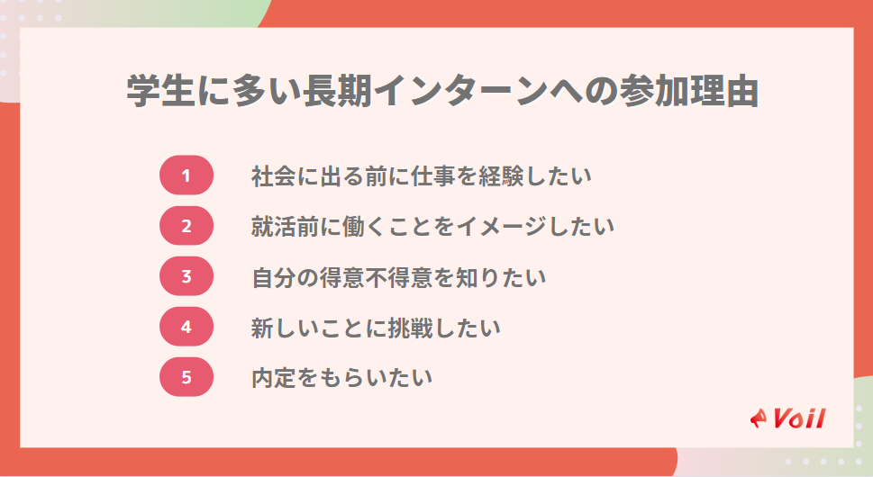 学生が参加できるインターンにはさまざまな種類がありますが、なぜ長期インターンに参加するのでしょうか。