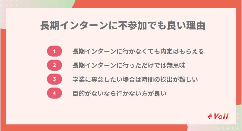 そこで、ここでは長期インターンに行かなくても良い理由を解説していきます。