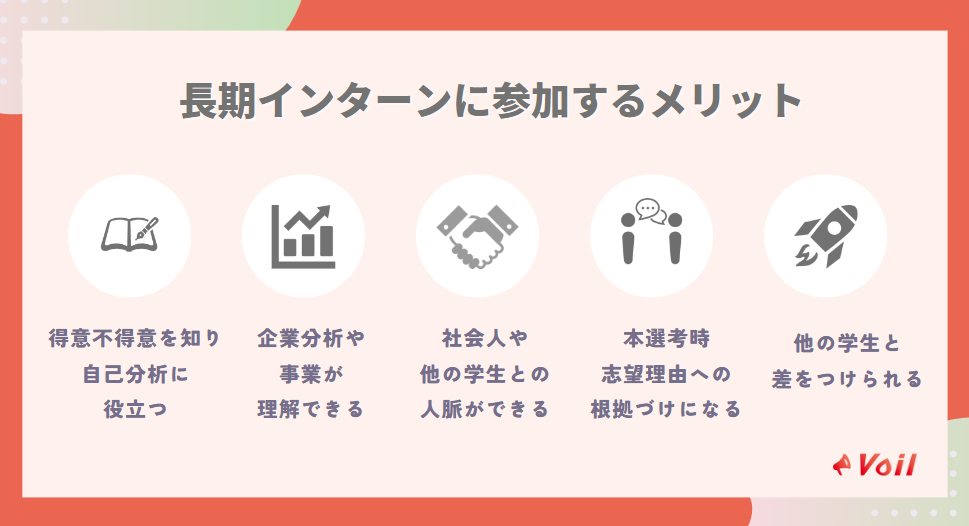そのため、長期インターンで仕事を経験し、就活前に働くイメージを鮮明にすることが目的となります。