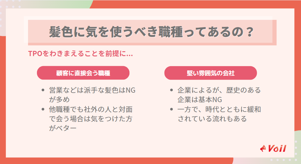 髪色に気を使うべき企業や職種はある?