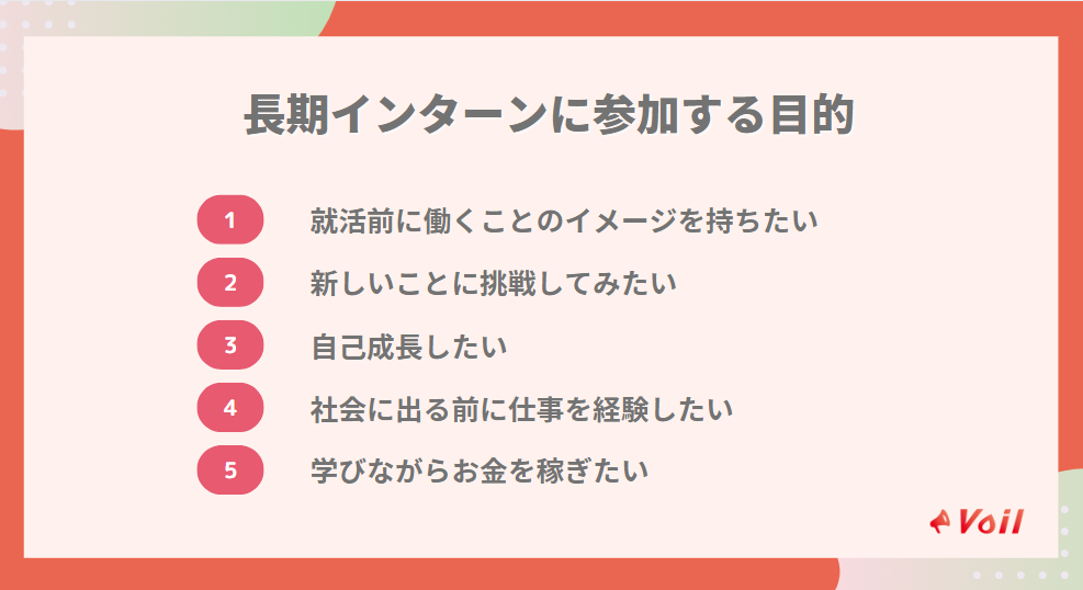 長期インターンに参加する学生は何を目的として参加するのでしょうか。