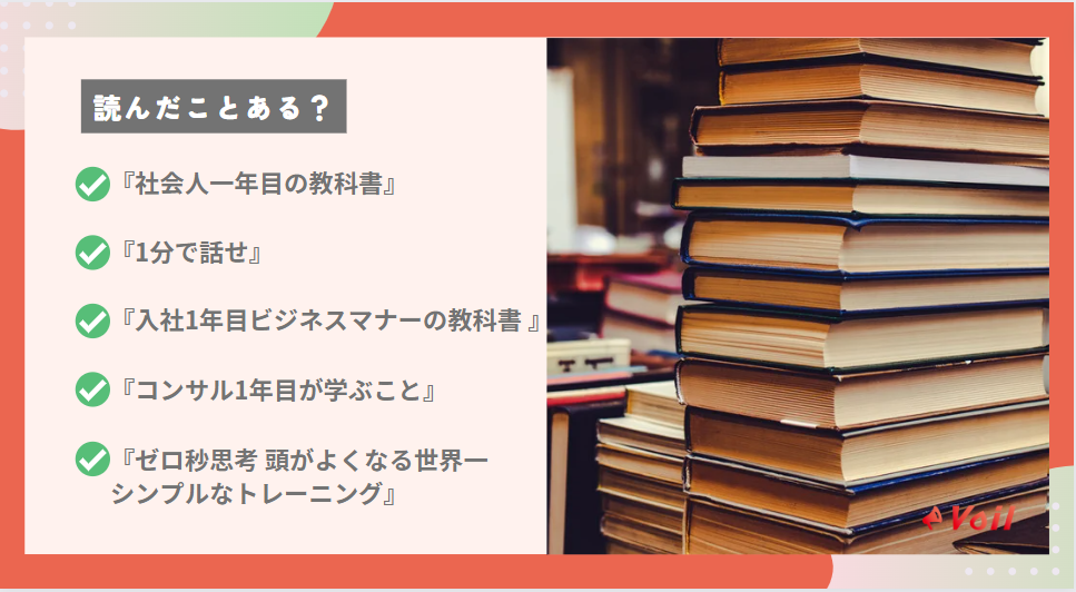 そこで、ここでは有給インターン中にまず読むべきおすすめの本を5つ紹介していきます。