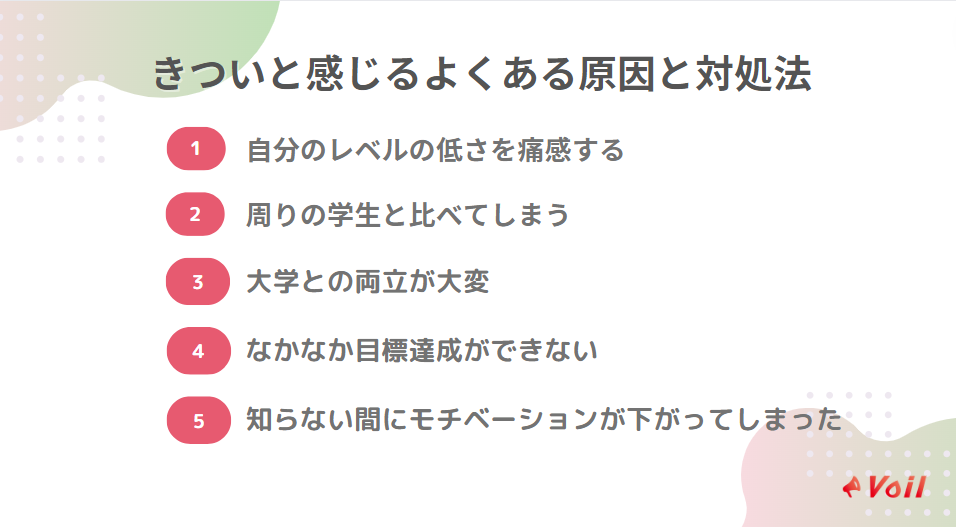 ここからは、長期インターンがきついと感じる原因とその対処法を見ていきましょう。