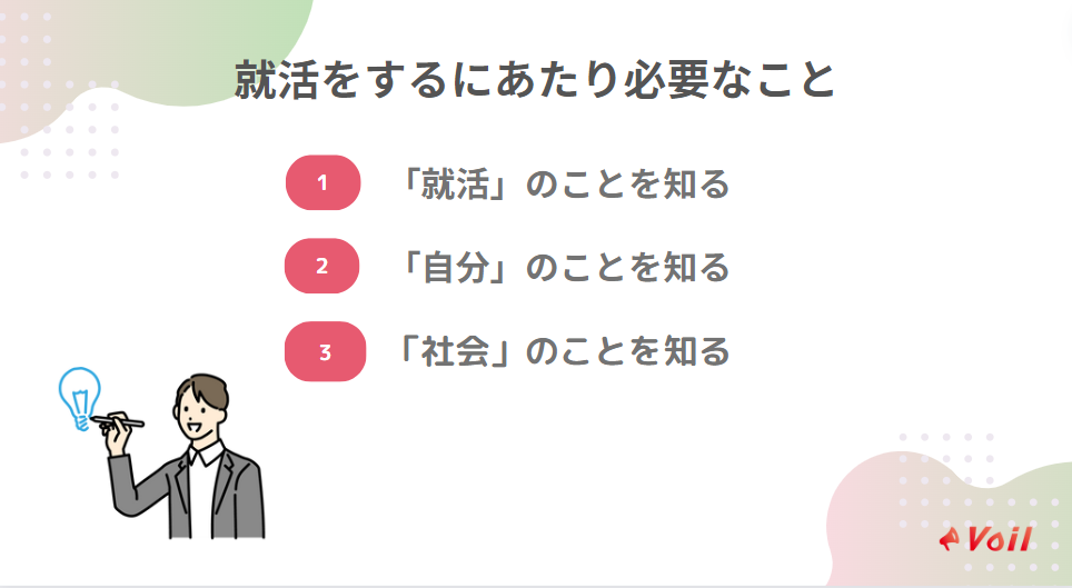 そこで、ここでは就活をするにあたって必要不可欠なことを3つ解説します。