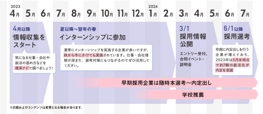 ※画像引用元:理系ナビ:2025卒 就活/インターンシップ スケジュールの注意点